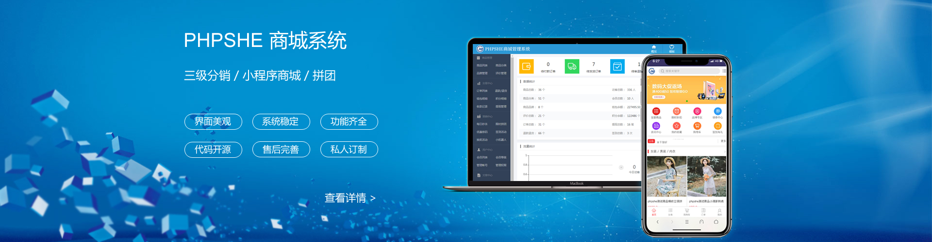 PHPSHE電商系統(tǒng)基于自家內(nèi)核框架開發(fā),移動(dòng)端使用現(xiàn)下流行的多端框架UNI-APP打造,